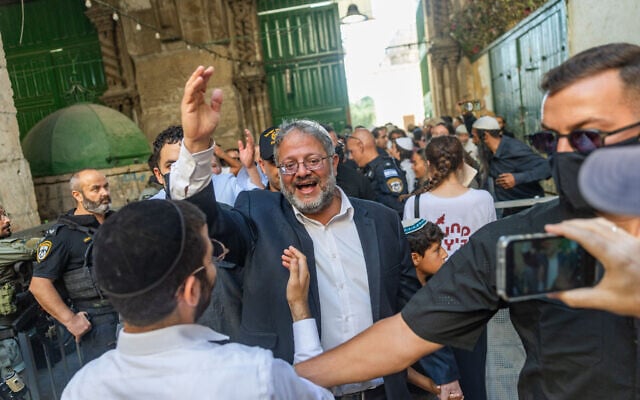 انتهك بن غفير هذا الفهم بشكل جريء يوم الأحد أثناء تأديته صلاة “العميدا” بصوت عالٍ لعشرات اليهود الآخرين الذين يحتفلون بذكرى خراب الهيكلين اليهوديين اللذين كانا يقعان على قمة الحرم القدسي في العصور القديمة على حد زعم الرواية الصهيونية .