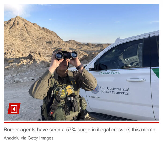 أفادت “نيويورك بوست” بزيادة ملحوظة في حالات العبور غير الشرعي للحدود الأمريكية المكسيكية وتسجيل أكثر من 7200 حالة خلال الشهر الحالي، بارتفاع قدره 57% مقارنة بيوليو الماضي.