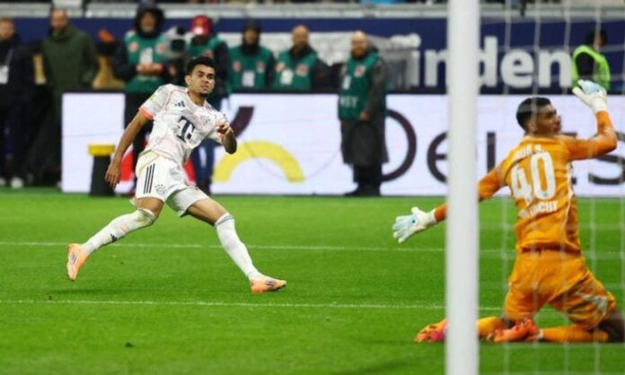 واحتاج دياز إلى 15 ثانية فقط ليمنح بايرن ميونخ التقدم ، بعدما تلقى تمريرة من سيرج جنابري وسدد في الزاوية البعيدة بعد تشتيت خاطئ من مدافع فرانكفورت روبن كوخ.