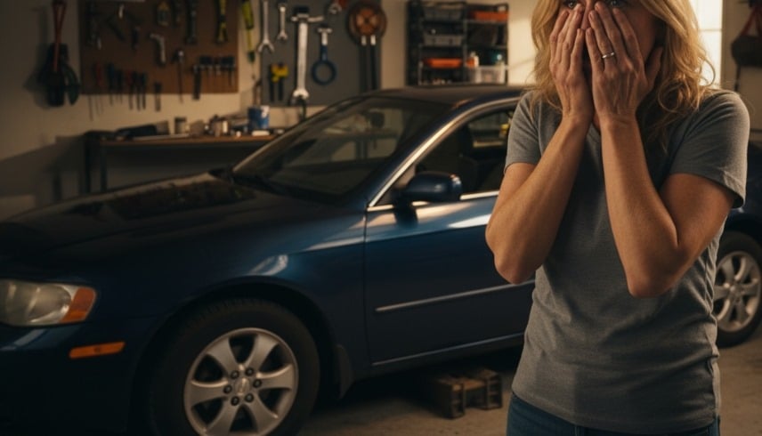 وكان الوالدان يقومان بتغيير إطارات سيارتهما، وعند انتهائهما، قادت الأم، البالغة من العمر 29 عاماً، السيارة إلى الخلف من مدخل المرآب.