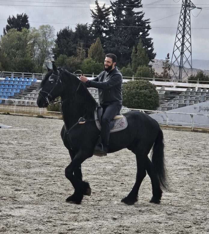 ومنذ توليه منصبه عقب سقوط نظام الأسد في 8 ديسمبر (كانون الأول) الماضي، حرص الرئيس أحمد الشرع على الظهور بإطلالات غير تقليدية، إذ شوهد يمتطي فرساً أسود من سلالة فريزيان في أحد نوادي الفروسية قرب دمشق، كما ظهر في جولات ميدانية بين المواطنين مرتدياً ملابس غير رسمية. ويُنظر إلى هذه الإطلالات بوصفها تعبيراً عن أسلوب جديد في التواصل مع الشارع السوري، يعكس انفتاحاً على ثقافة العصر الرقمي ومنصات التواصل الاجتماعي.