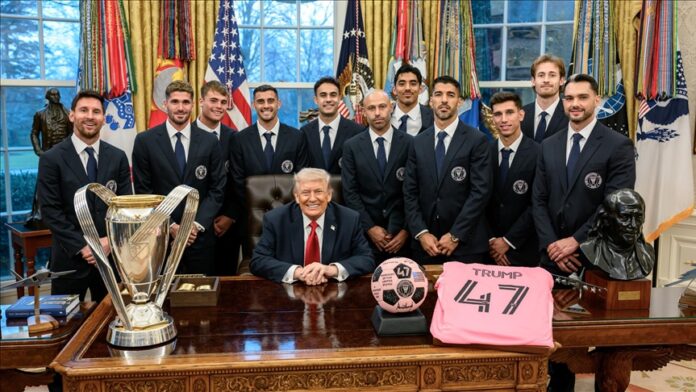 التقى النجم الأرجنتيني ليونيل ميسي وزملاؤه في فريق إنتر ميامي، بالرئيس دونالد ترامب في البيت الأبيض للاحتفال بفوز النادي بلقب الدوري الأمريكي لكرة القدم.