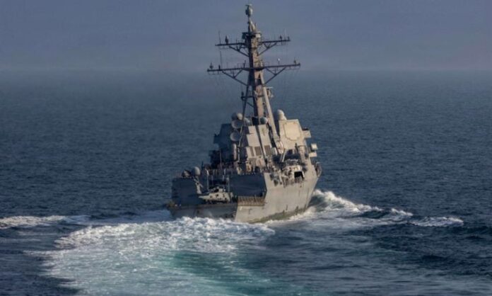 ويُسمع في التسجيل صوت ضابط إيراني يوجه تحذيرا للسفينة الأمريكية من دخول مضيق هرمز والعودة إلى المحيط الهندي وإلا سيتم استهدافها.