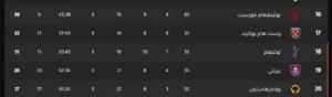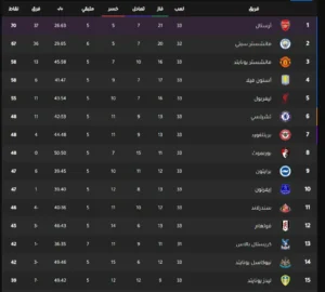 وفيما يلي جدول ترتيب الدوري الإنجليزي: