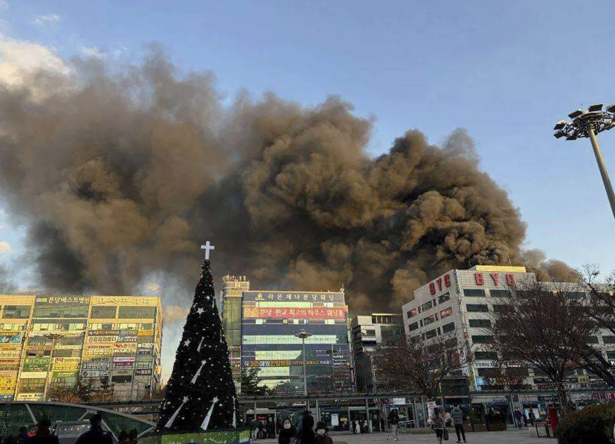 وتم نشر ما يربو على 100 رجل إطفاء و 40 سيارة إطفاء في موقع الحريق، وفقا لإدارة إطفاء محافطة جيونغي ، وأظهرت لقطات مصورة دخانا وألسنة لهب تنبعث من الجزء السفلي من المبنى.