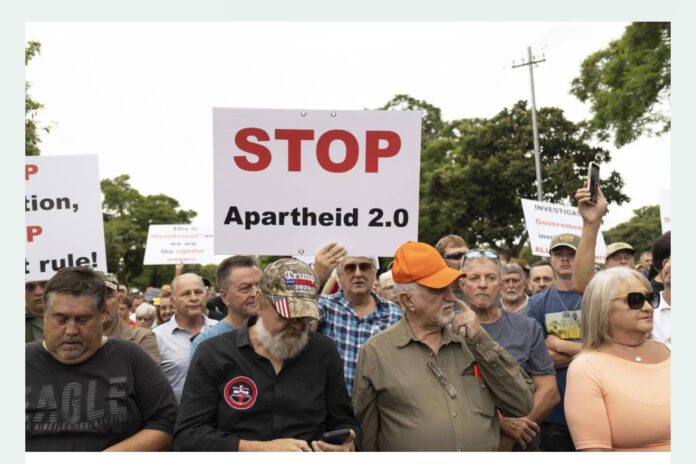 أعرب مئات البيض في جنوب أفريقيا عن دعمهم الرئيس الأميركي دونالد ترمب، اليوم السبت، واحتشدوا عند السفارة الأميركية في بريتوريا، وزعموا أنهم ضحايا العنصرية من جانب حكومة جنوب أفريقيا.