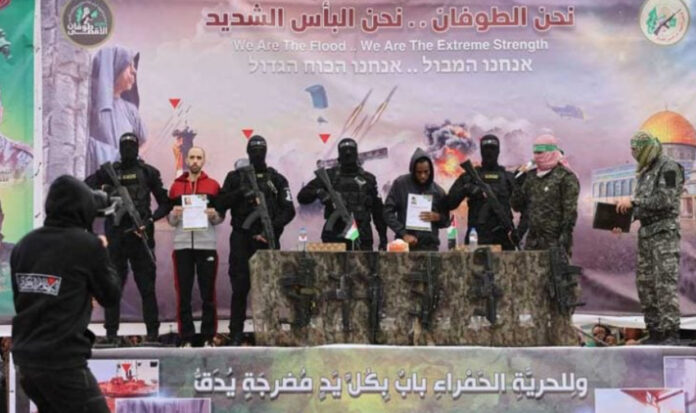 وفي وقت سابق السبت، تم تسليم الأسيران تال شوهام، الذي قال متحدث من كتائب القسام، عند تلاوته قرار الإفراج عن الأسيرين من على منصة التسليم بمدينة رفح، إنه يعمل ضمن وحدة العمليات في جهاز الاستخبارات الإسرائيلي “الموساد”، والثاني أفيرا منغستو، الذي تم احتجازه عام 2014 في ظروف غامضة.
